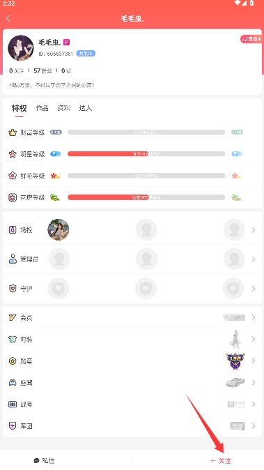 4、进入该主播的个人首页后,点击右下角的关注按钮即可将其添加至您的关注列表。