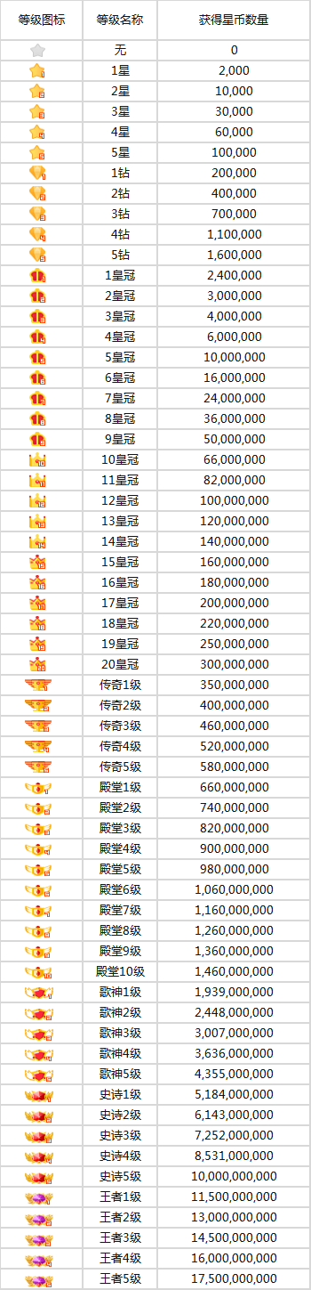 繁星直播等级价格表
