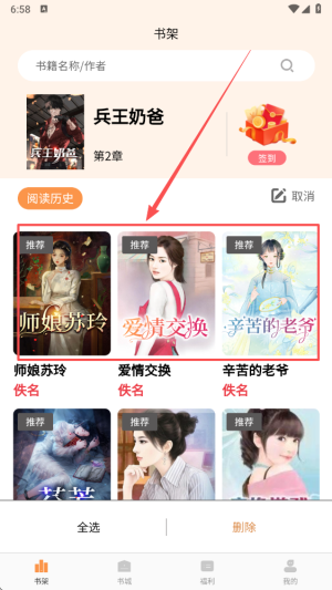2、选择“书架”选项来查看您添加的所有小说和阅读列表。