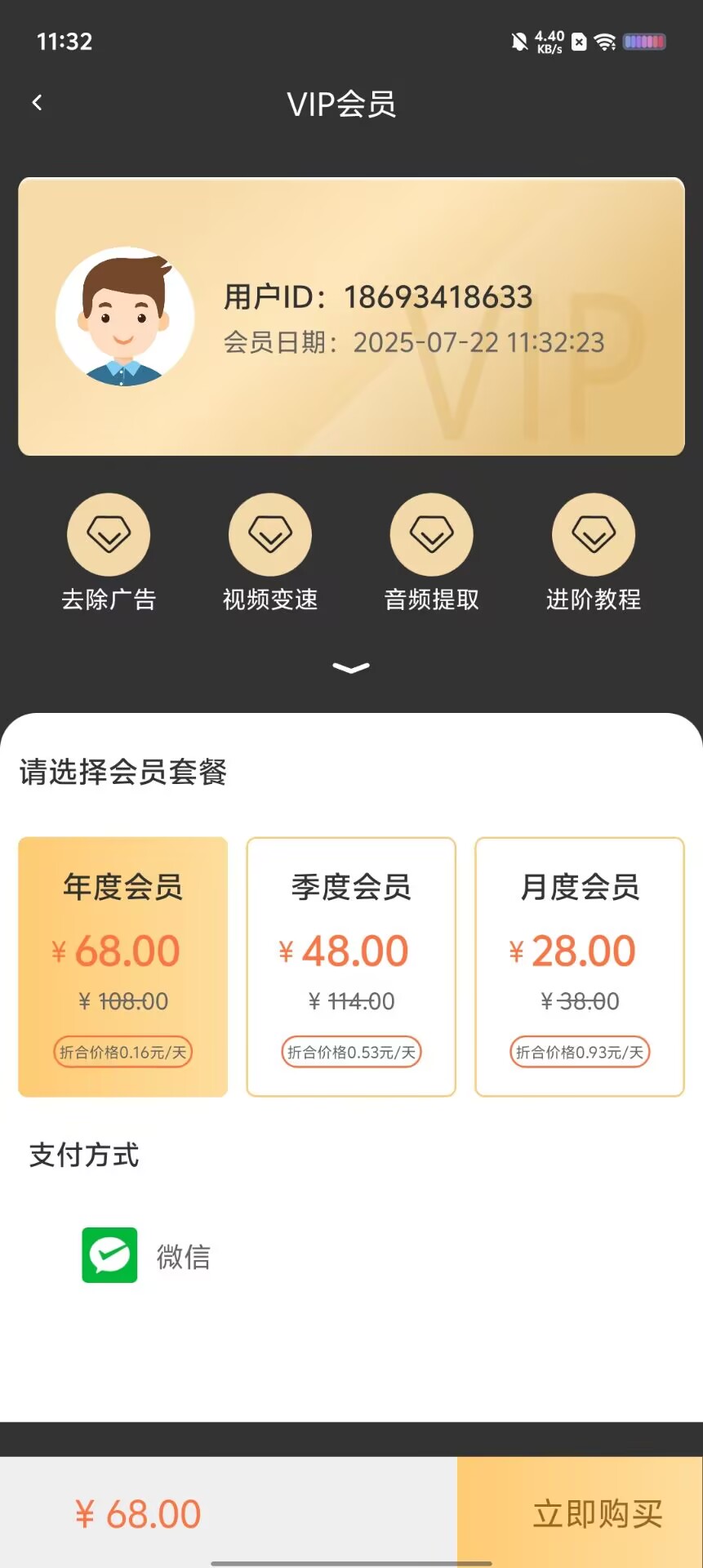 2、选择会员套餐,购买会员后即可享受无限次剪辑服务。
