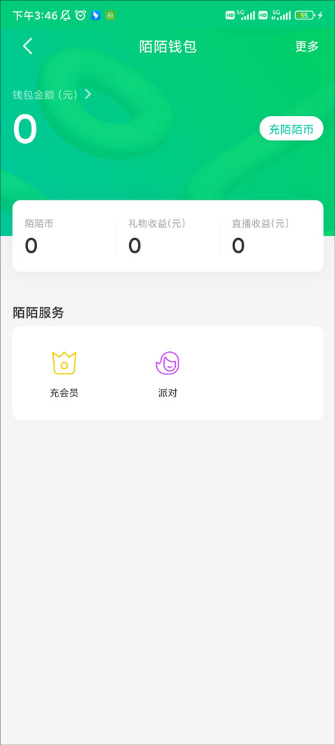 3、钱包的右上部分,有一个白色的“充陌陌币”的按钮,我们点击这里。