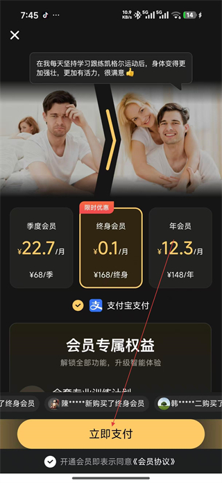 4、如果你需要解锁更多的培训项目,你可以选择成为会员。在会员购买界面,选择合适的会员套餐,点击“支付”按钮完成支付。