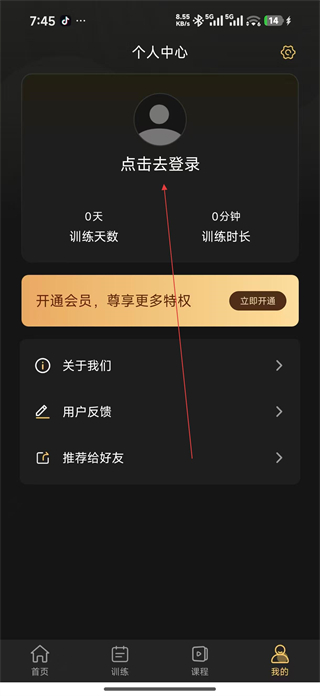 1、打开凯格尔训练,进入个人中心页面,点击“登录”按钮,您将被重定向到登录界面。