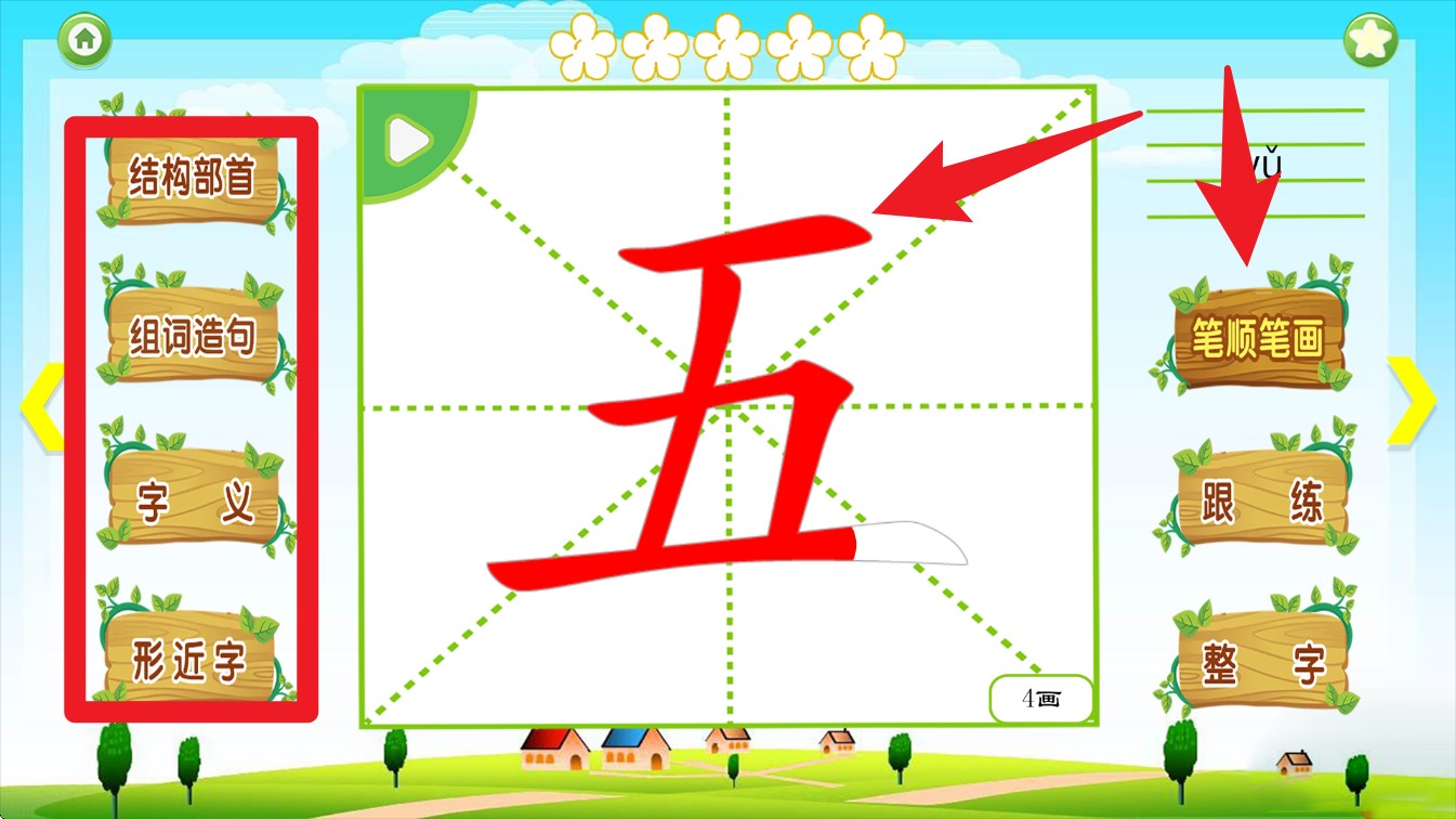 2、动态书写演示:每个汉字都配有标准的发音和书写动画,清晰地展示正确的笔画顺序和发音规则。