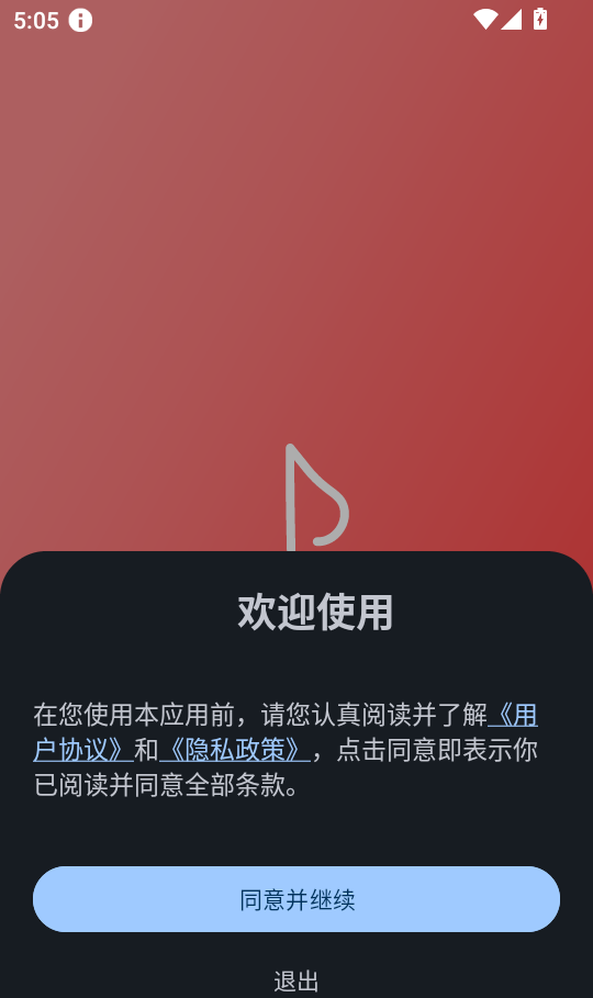 1、首先,打开软件,阅读说明,然后点击“同意并继续”按钮进入APP。