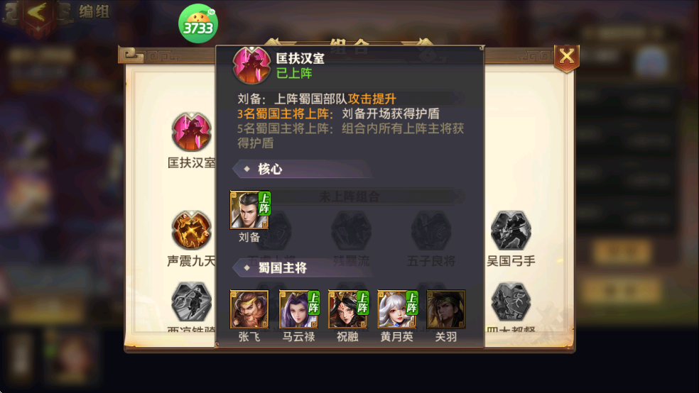 核心英雄:【刘备】上阵蜀国部队攻击提升。