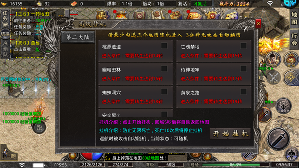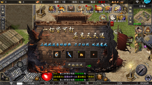 大屠龙游戏内置了转生、神炉、熔炉、逆天改命等辅助系统。这些系统不仅能够帮助玩家增强属性、提升生命、防御和装备,还能让玩家在游戏中找到更多乐趣与成就感。同时,大屠龙还贴心地为玩家提供了蓝手指托管挂机功能,让你在忙碌时也能轻松升级,不错过任何一丝成长的机会。自由PK、万人攻沙,决战千里之外,大屠龙让你随时随地都能感受到战斗的激情与热血。
