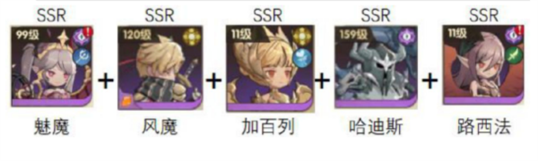 阵容英雄:魅魔+风魔+加百列+哈迪斯+路西法