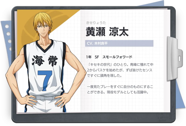 原帝光中学篮球部「奇迹的世代」中一人,现就读于海常高校一年级,海常篮球部的王牌。被黑子哲也称“海常的黄濑同学是最棒的选手”。
