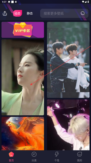 2、在“动态”或“静态”页面浏览壁纸,点击感兴趣的壁纸查看详细信息。