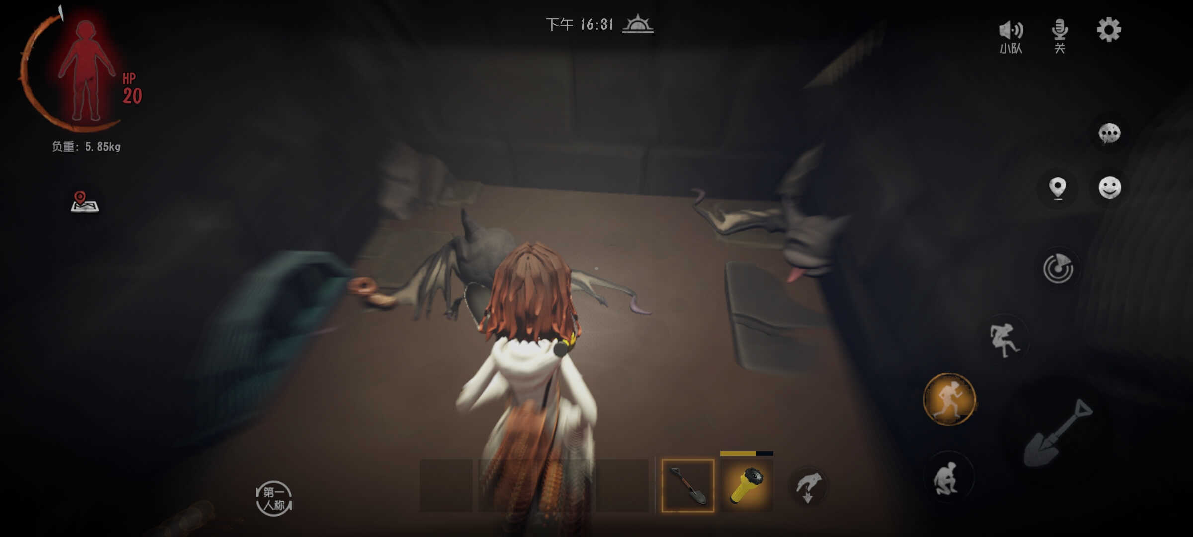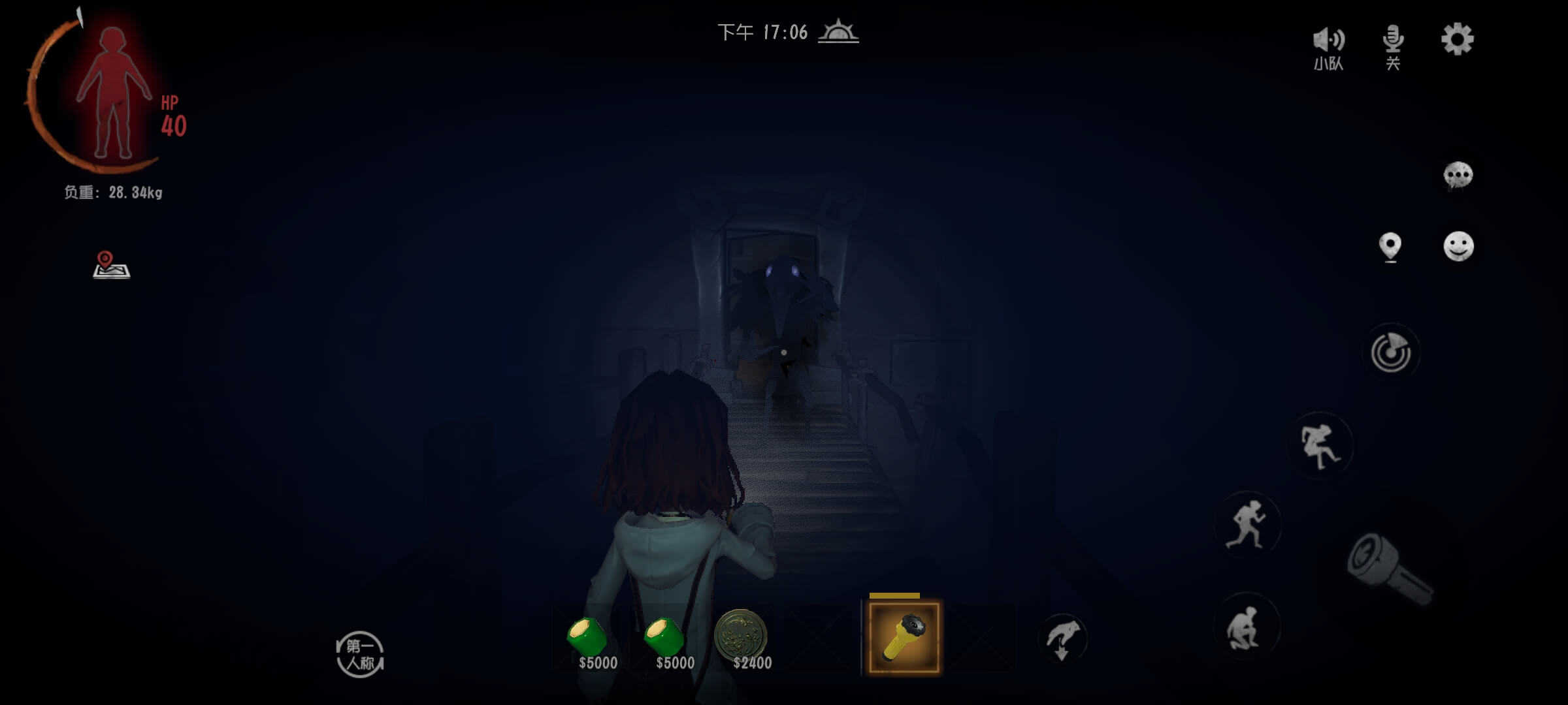 4、鬼新娘:出现时灯光闪烁且有笑声,闪现移动靠近后会将玩家带走,加速可脱离范围,不可消灭。