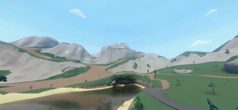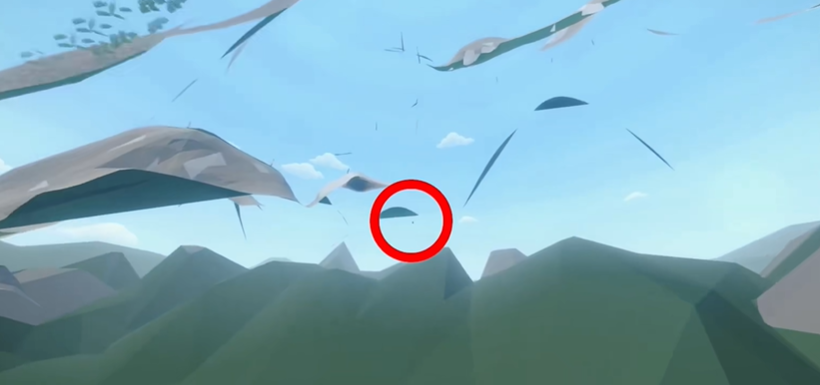 2、穿过山脉后即可看到漂浮在空中的立方体。
