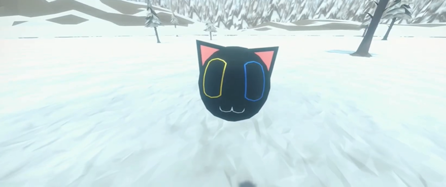 3、穿过这个柱子后你可以看到后面藏着一个非常怪异又可爱的小猫球。