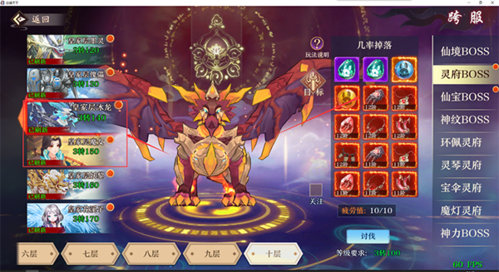10、点击讨伐后可以看到玩家去了一个灵府boss十层的独立地图,左方是十层boss的全部刷新信息。