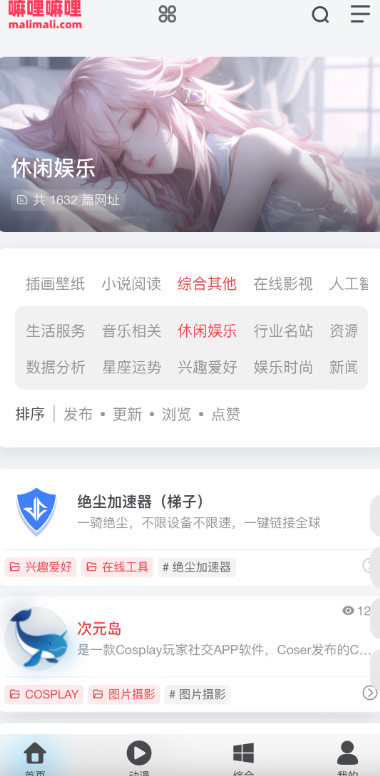 2、主页有 5 个主要部分可供选择:动画排名、最新更新、新闻、后续历史和成员。