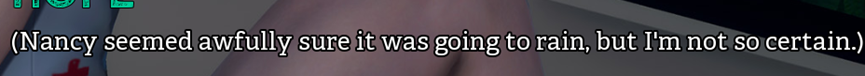 rain?克林顿经常下雨,作者十分着重对雨的描写,之后好多剧情都会在下雨开展。