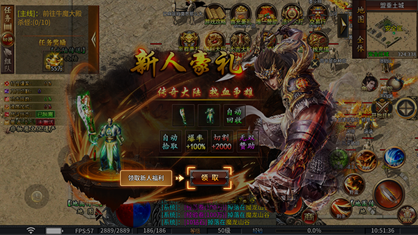 1、进入屠龙圣域游戏可以领取新手豪礼开始游玩。