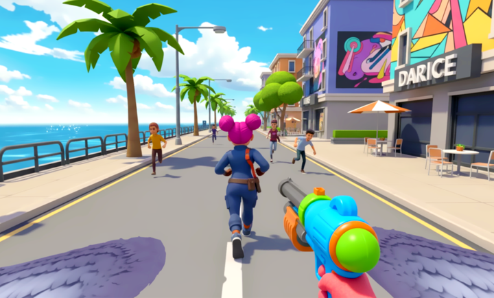 在这个光怪陆离的世界里,你将邂逅形形色色的人类角色:广场上举着面包屑对你微笑的老人,或许会成为你忠实的“投喂者”;举着手机疯狂追拍的网红,可能因你突然降落头顶而惊慌失措;而那些被你抢走午餐的上班族,则会愤怒地挥舞公文包,试图驱赶你这只“无法无天”的鸽王。你的每一个恶作剧般的举动——比如精准空投“鸽子炸弹”或突然抢走三明治——都会引发人类夸张的反应,为游戏增添无数爆笑瞬间。