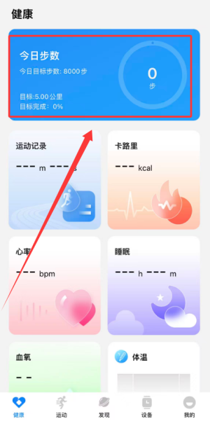 2、健康部分实时显示一天的步行步数,帮助用户掌握每日运动量数据。