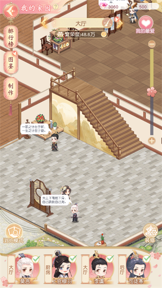 2、掌柜可收集家具,自由布置房间,集齐家具套装后可给所有伙伴提供属性加成。