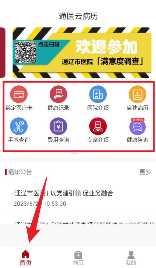 2、在首页界面,用户可以点击按钮绑定医疗卡功能,快速进入相应的医疗卫生服务页面,从而实现便捷的在线信息查询。