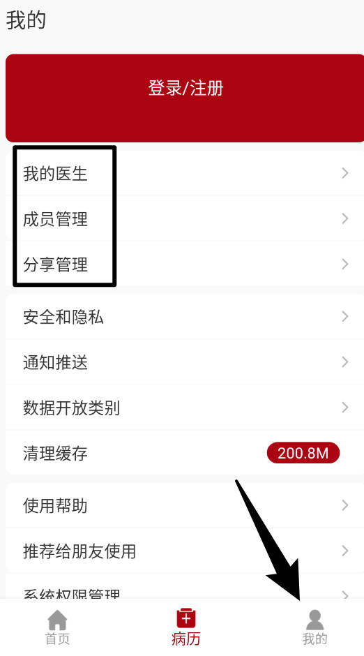 4、在“我”界面,您可以查看“我的医生”、“会员管理”、“分享管理”等功能选项,方便您进行个性化的账户管理和信息共享操作。