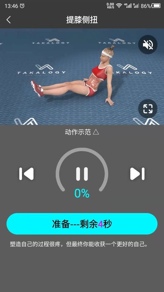 5、完成这组训练后,点击切换图标切换到下一组,点击开始,等待倒计时同时进行练习。