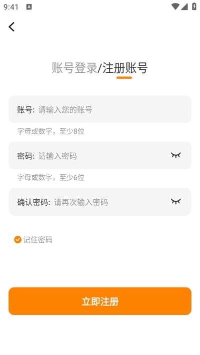 2、点击注册账号,输入账号密码进行注册