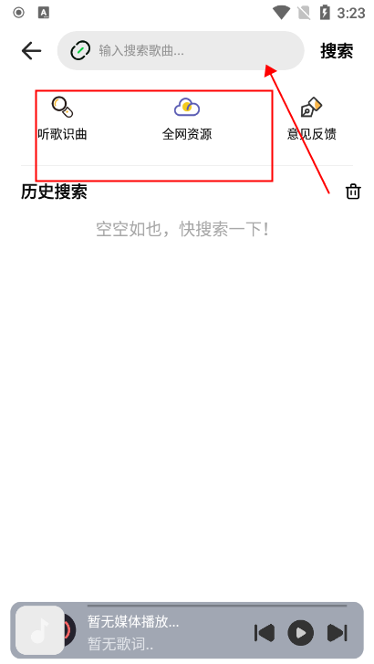 3、输入关键字,精确搜索您最喜欢的音乐。