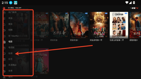 4、左侧功能栏,可以直接切换到喜欢观看的板块。