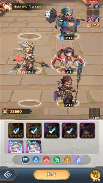 2、再加上吕布、典韦这两个高爆发武将,基本上对阵各种队伍都有着一定优势,小乔作为法师还能补充法伤,对敌人进行群体的冰冻和群伤暴击,带来控制的同时补足伤害,甄姬可以持续治疗,还能加强化效果,诸葛亮能附加侵蚀得到强化,并且还能引爆侵蚀,这样一套高攻击、高群控以及辅助持续回血都有的搭配,不管是用来推图还是刷不同的副本都很好用。