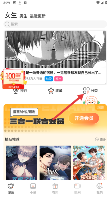 2、在分类页面选择【感兴趣的漫画】,进入漫画详情页。