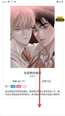 3、在漫画详情页【下滑】,进入漫画阅读页面。