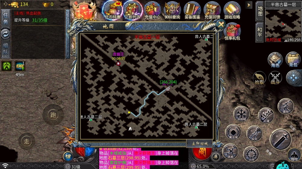 3、这个时候你可以单价自动,你的角色就会自动去到“泡点地图”进行打怪到100级哦。
