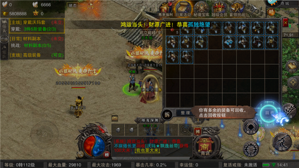 3、点击“一键回收”,装备回收可以获得元宝哦。
