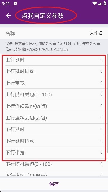 3、在选定应用后,进入参数设置界面。您可以根据测试需求自定义网络环境,包括模拟延迟、丢包率、带宽限制等常见弱网场景,全面还原真实网络问题。