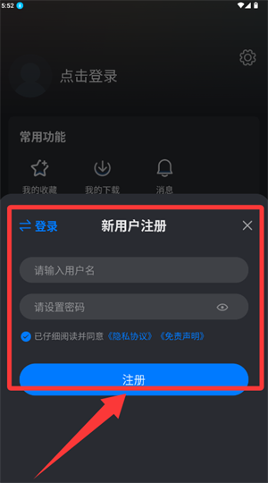 1、在新用户注册界面填写用户名与密码,完成账户注册。