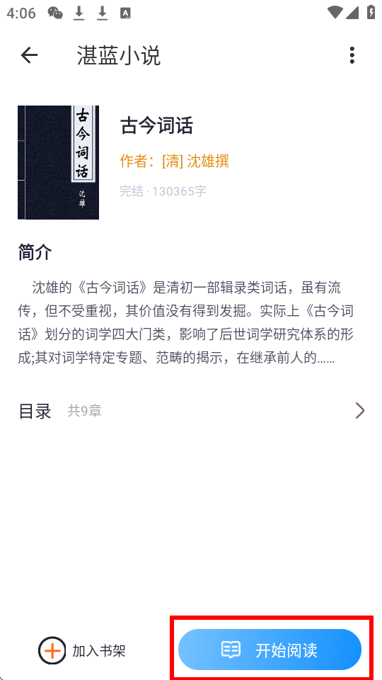 5、直接进入你喜欢的小说界面,点击“开始阅读”。