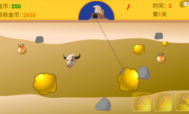 2、游戏玩法简单,和原版黄金矿工差不多,钩取黄金,到达目标分数即可胜利。