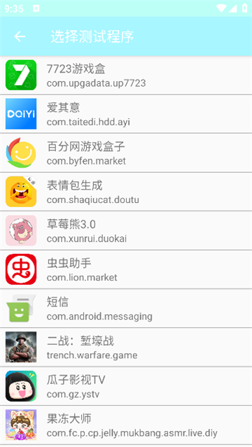 7、在显示的应用程序列表中选择需要测试的那一款应用程序。
