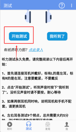 3、听力测试:支持用户进行听力测试,了解自己的听力状况。