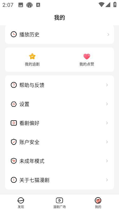 1、打开七猫漫剧app,点击底部【我的】-【播放历史】
