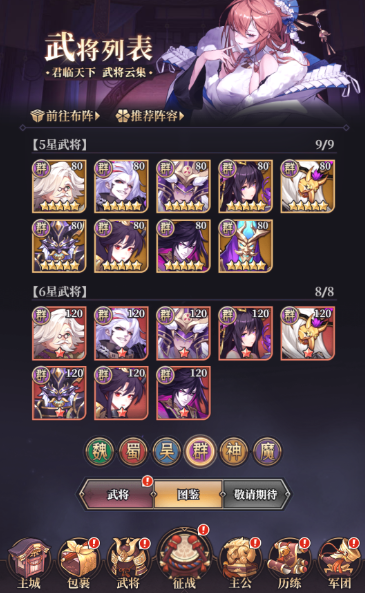 2、玩家可以通过图鉴查看各个阵营的武将。