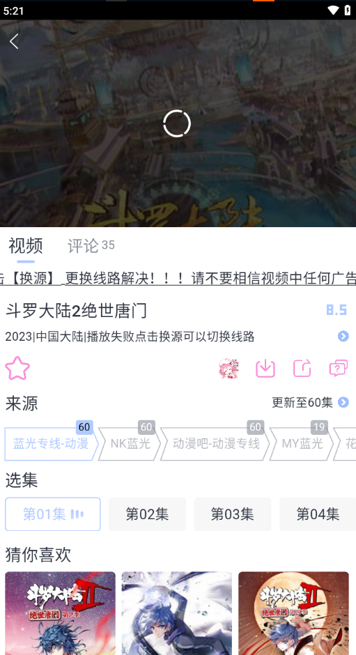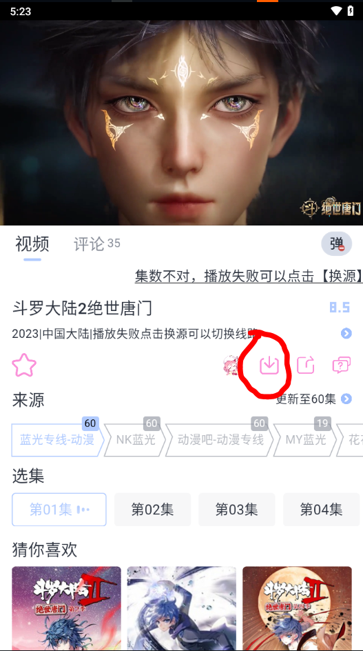 4、如遇卡顿,可以点击下方的来源进行换源播放。