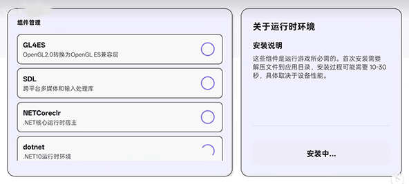 1、打开启动器后,先授予所需的权限,接着在启动器内点击安装按钮,以完成所需运行环境的安装