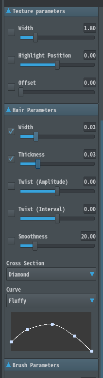 第三项Stiffness是硬度,越硬的毛越难动起来,这里我保留默认设置。