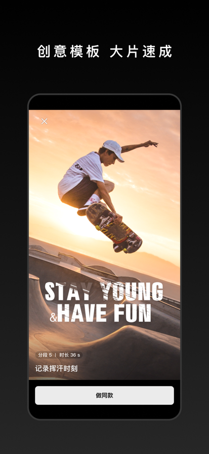 1、选择模板,自动拍摄、剪辑、配乐,炫酷运镜,轻松成大片。