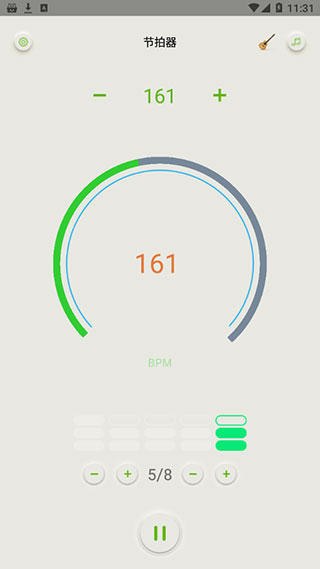 乐器节拍器是一款简单易用的音乐节拍器软件,拥有丰富的音乐节拍界面设计,可以帮助用户正确学习和掌握音乐节拍,享受优质的服务,还还可以让零基础用户准确调整自己的节拍点,自由掌握音乐节奏并演奏出完美的音乐,能完全满足所有使用需求,还支持多种不同的音调和乐器音效,随时随地创造出不同的节奏音乐,还具有个性化的功能和选项,无需任何经验即可上手,自由浏览各种热门音乐节拍视频,有兴趣的用户欢迎下载软件。