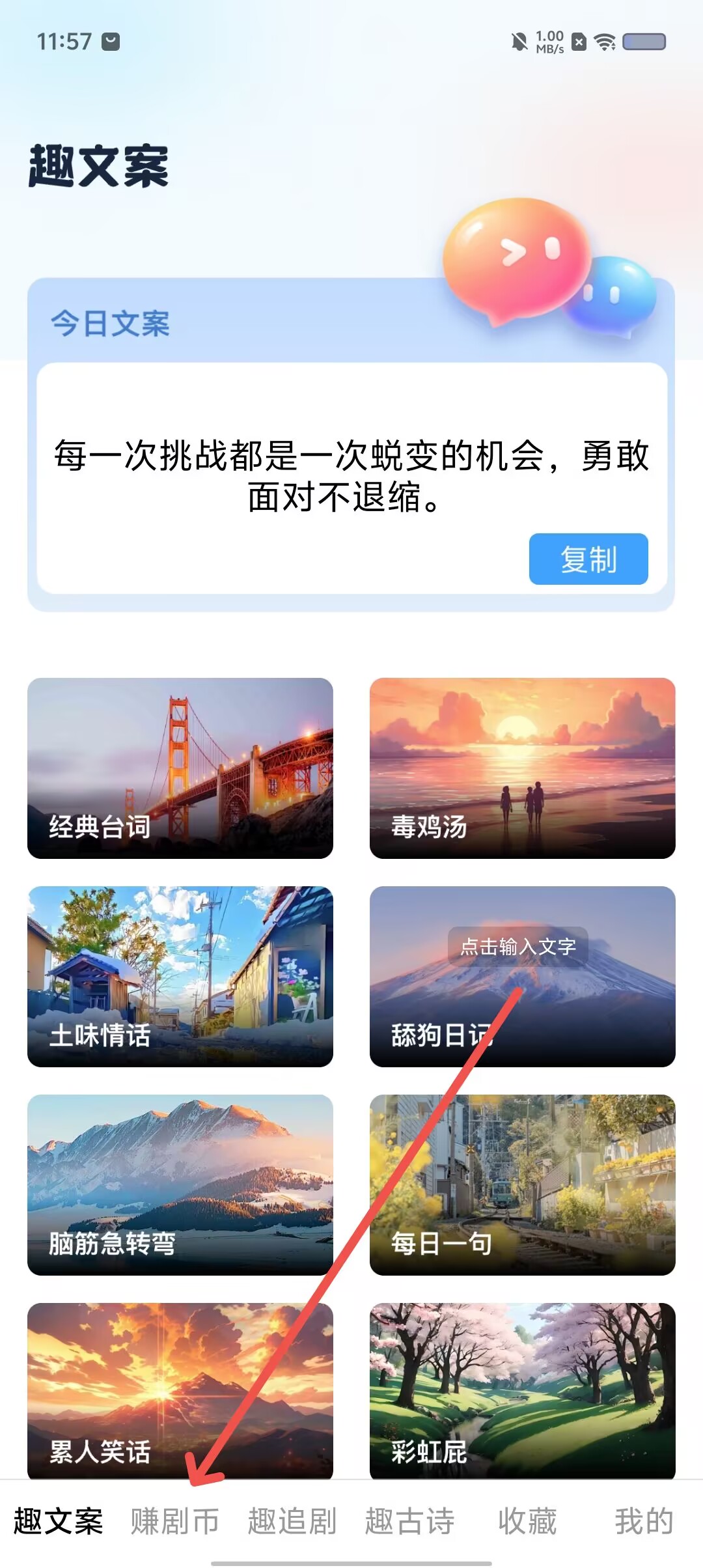 1、按照说明输入“赚取剧币”。