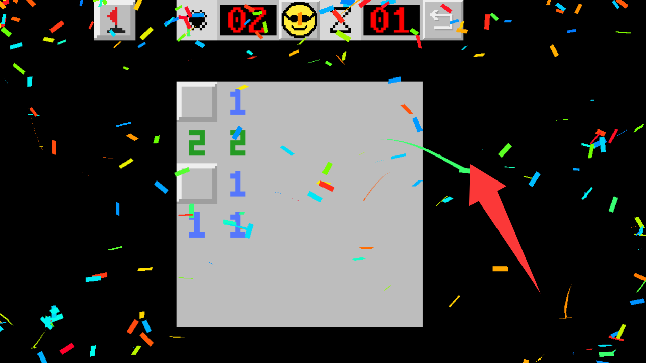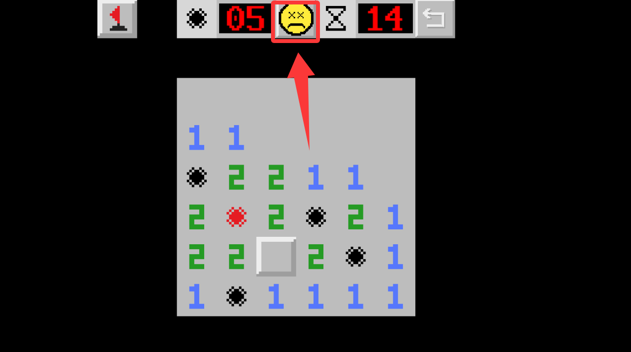 2、然后踩雷了就点击红色框框里的笑脸就重新开始。